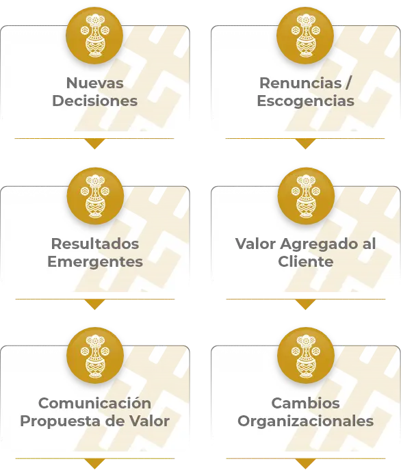 Conectamos los resultados con la estrategia. Implementamos s la conversación estratégica, entendemos ¿Qué paso? ¿Cómo vemos el panorama? ¿Cómo nos sentimos? ¿Qué vamos a hacer? y decidimos ajustes para poner en práctica y adherir a la cultura organizacional.